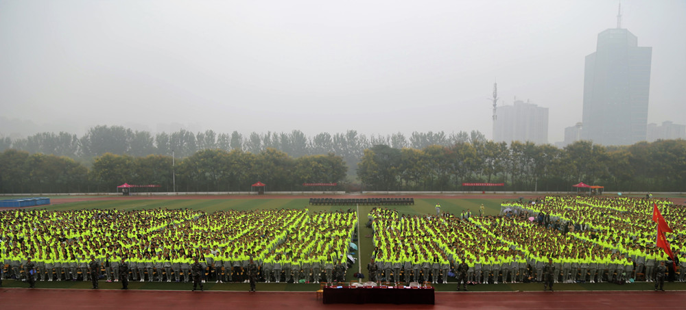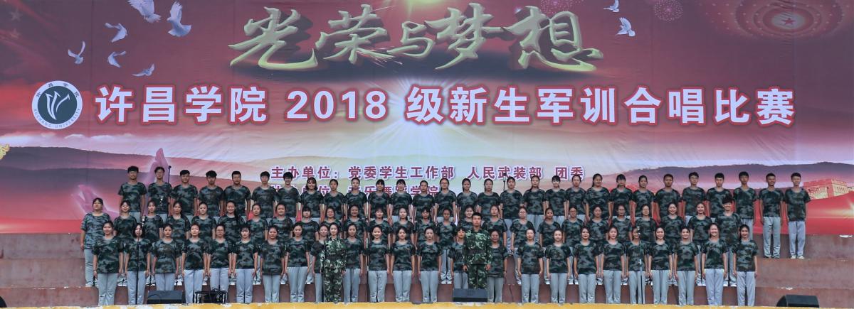 9月18日下午,金沙官网2018级新生军训合唱比赛在羽飞田径场成功举办。魏都区武装部政委牛听甫和金沙官网保卫处、学生处、团委、音乐舞蹈学院等相关部门负责人出席并担任比赛评委,各学院党总支副书记、新生辅导员和全体2018级新生共计7400余人共同观看了比赛。