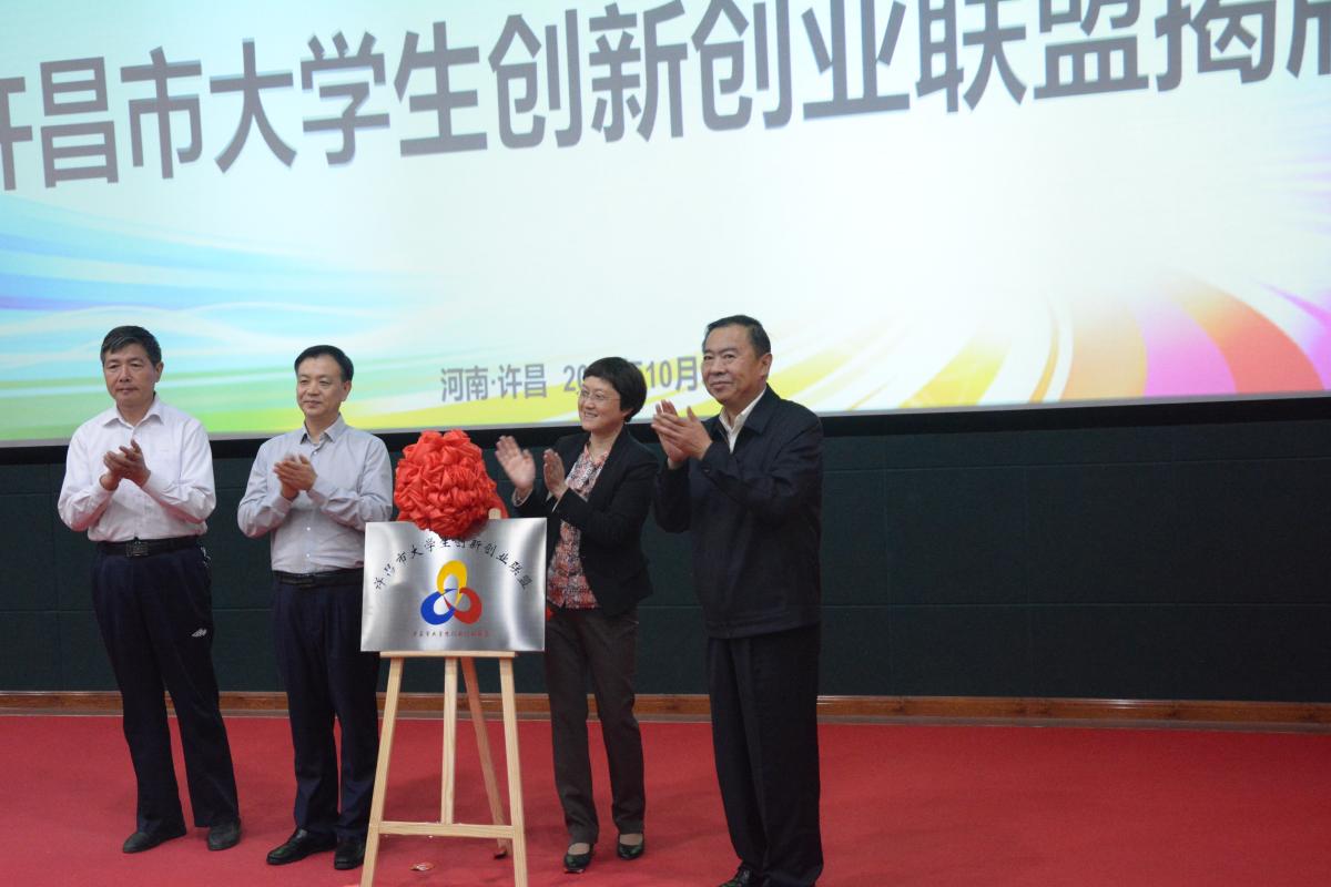 在许昌市政府相关职能部门的指导下,为整合双创教育资源,推动大学生双创各种资源共享,为社会培养更多的应用型双创人才,金沙官网联合许昌市地方高校成立了“许昌市大学生创新创业联盟”。启动仪式上,刘胜利、赵继红、谭水木、杨鲁西为“许昌市大学生创新创业联盟”揭牌。