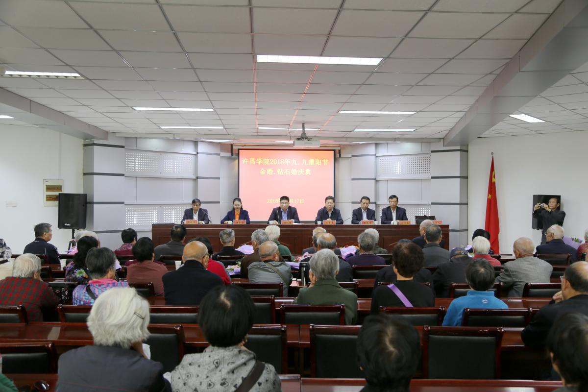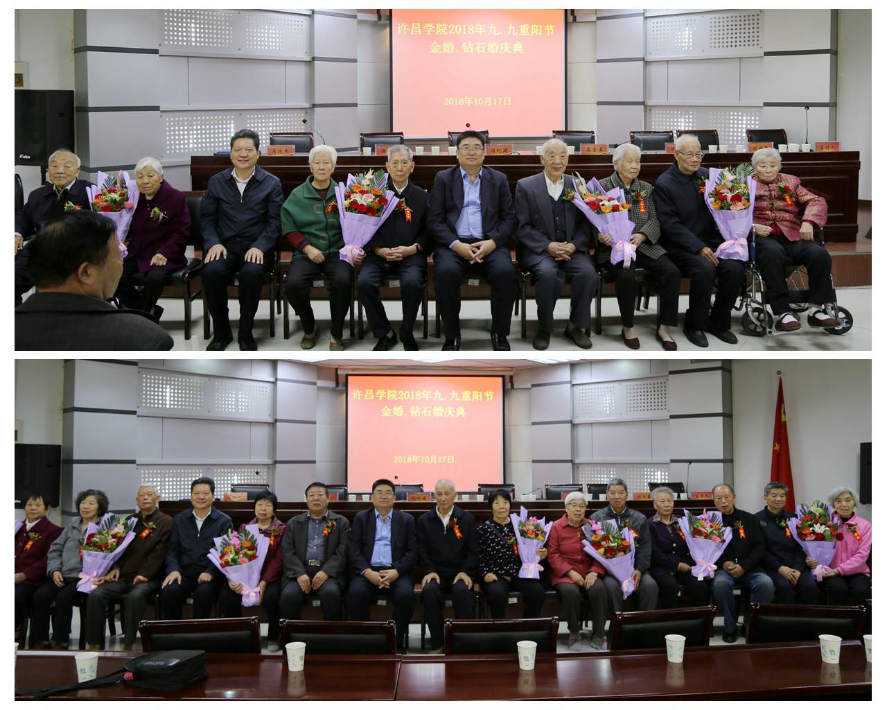 岁岁重阳,今又重阳。10月17日上午,在传统敬老节日—重阳节来临之际,金沙官网在第三会议室举行了2018年“九九重阳节”茶话会暨金婚钻石婚庆典。校党委书记闫纪建、校工会主席高金星出席庆典,党政办公室、党委组织部、离退休工作处负责同志和13对金婚钻石婚伉俪、百余名离退休老同志参加庆典。茶话会和金婚钻石婚庆典由离退休工作处党总支书记马廷杰主持。