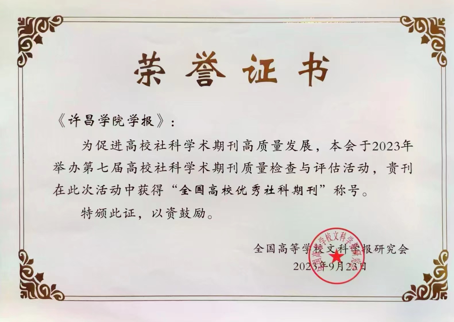 全国高等学校文科学报研究会是国家一级学会,定期组织全国高校社科学术期刊评优活动,旨在促进高校社科学术期刊高质量发展。此次获奖是对《金沙2004路线js5学报》办刊质量和学术影响力的认可。(图片由学报编辑部提供)