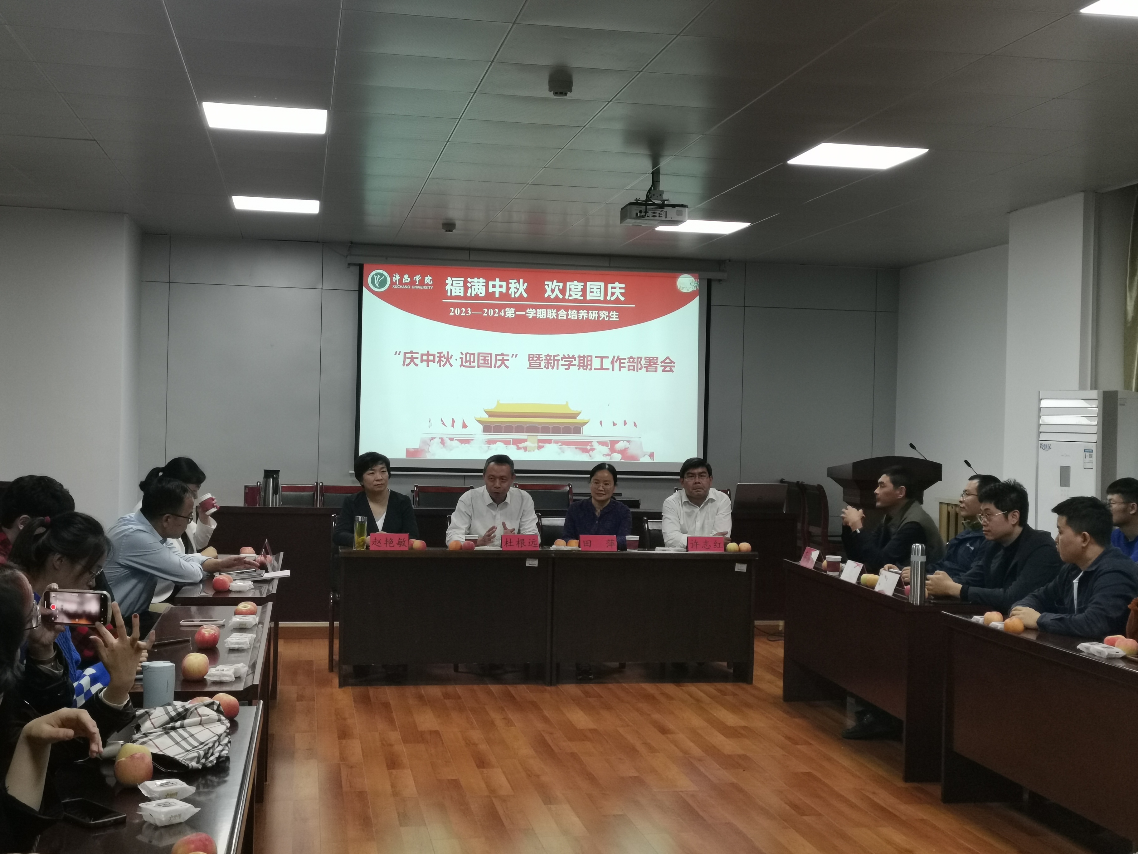 9月27日下午,金沙官网在化工与材料学院S302会议室举办联合培养研究生“庆中秋·迎国庆”茶话会。副校长杜根远出席会议并致辞。研究生导师代表及全体在校研究生参加会议。会议由学科建设办公室主任田萍主持。