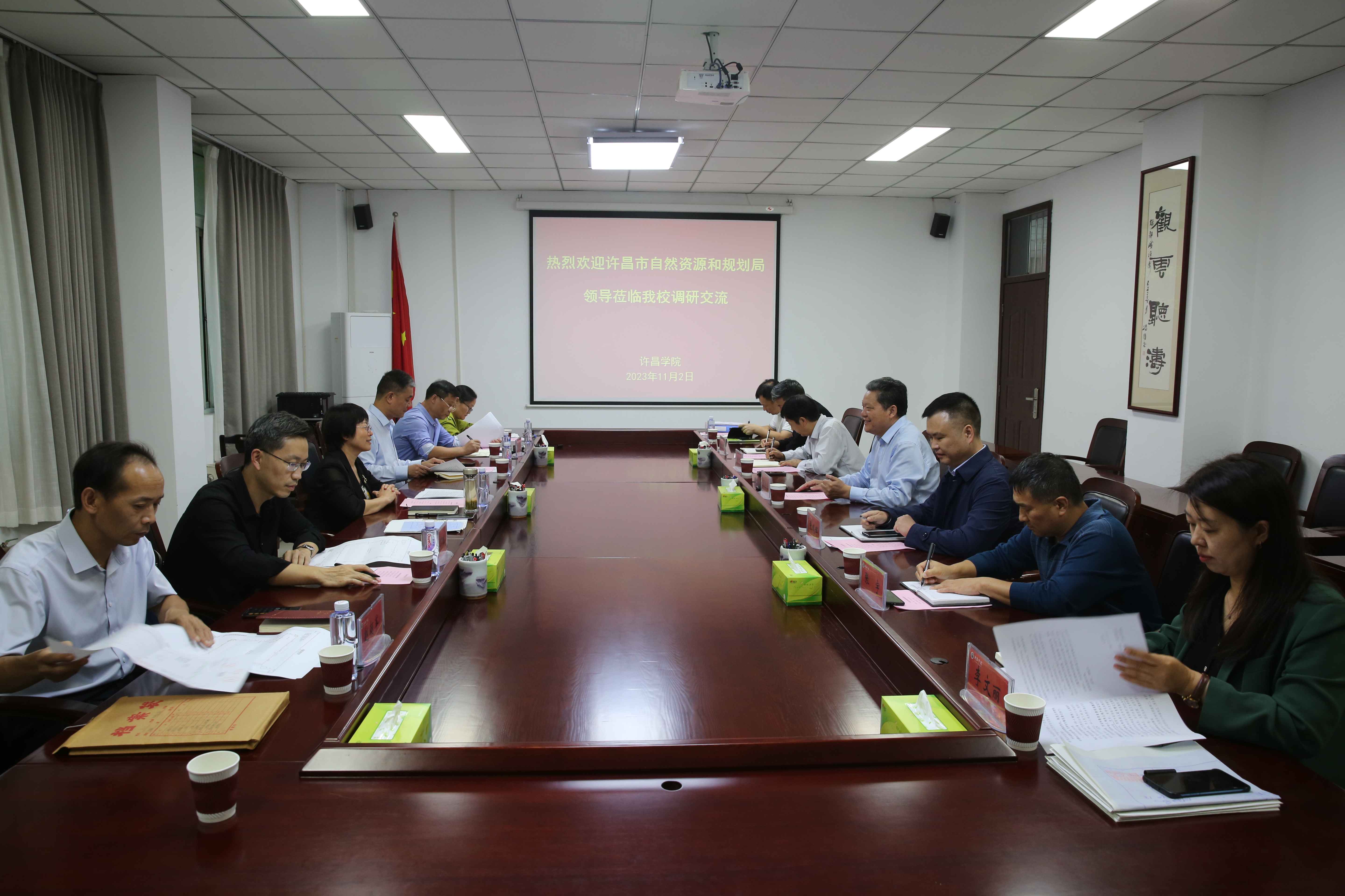 11月2日下午,许昌市自然资源和规划局局长田秋琴等一行6人来到金沙官网,就落实许昌市委书记史根治到金沙官网考察调研时指示精神、专题解决学校兴华路校区土地有关问题进行调研交流。校长郑直会见田秋琴一行。金沙官网在办公楼第一会议室举行座谈会。副校长高金星出席座谈会。座谈会由院长办公室主任张鹏辉主持。