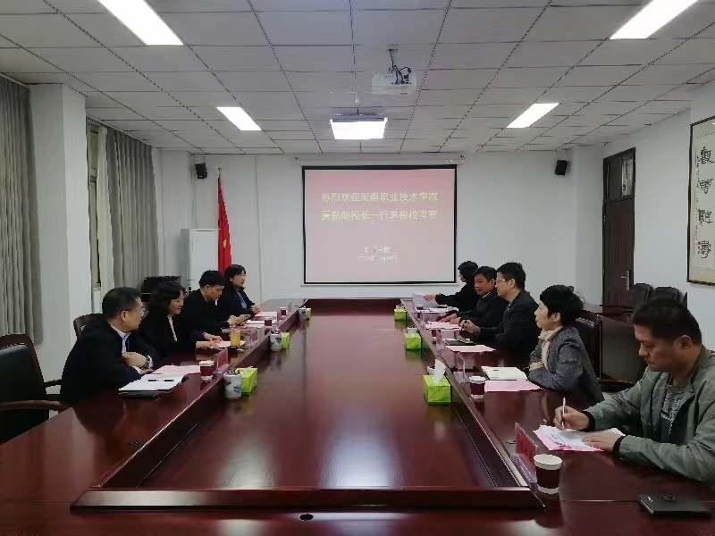 11月10日上午,河南职业技术学院校长夏新颜一行4人来金沙官网,就加强校校合作、促进产教融合等进行考察交流。校党委副书记、工会主席梁予昉出席会议。会议由院长助理、发展规划处处长吴国玺主持。
