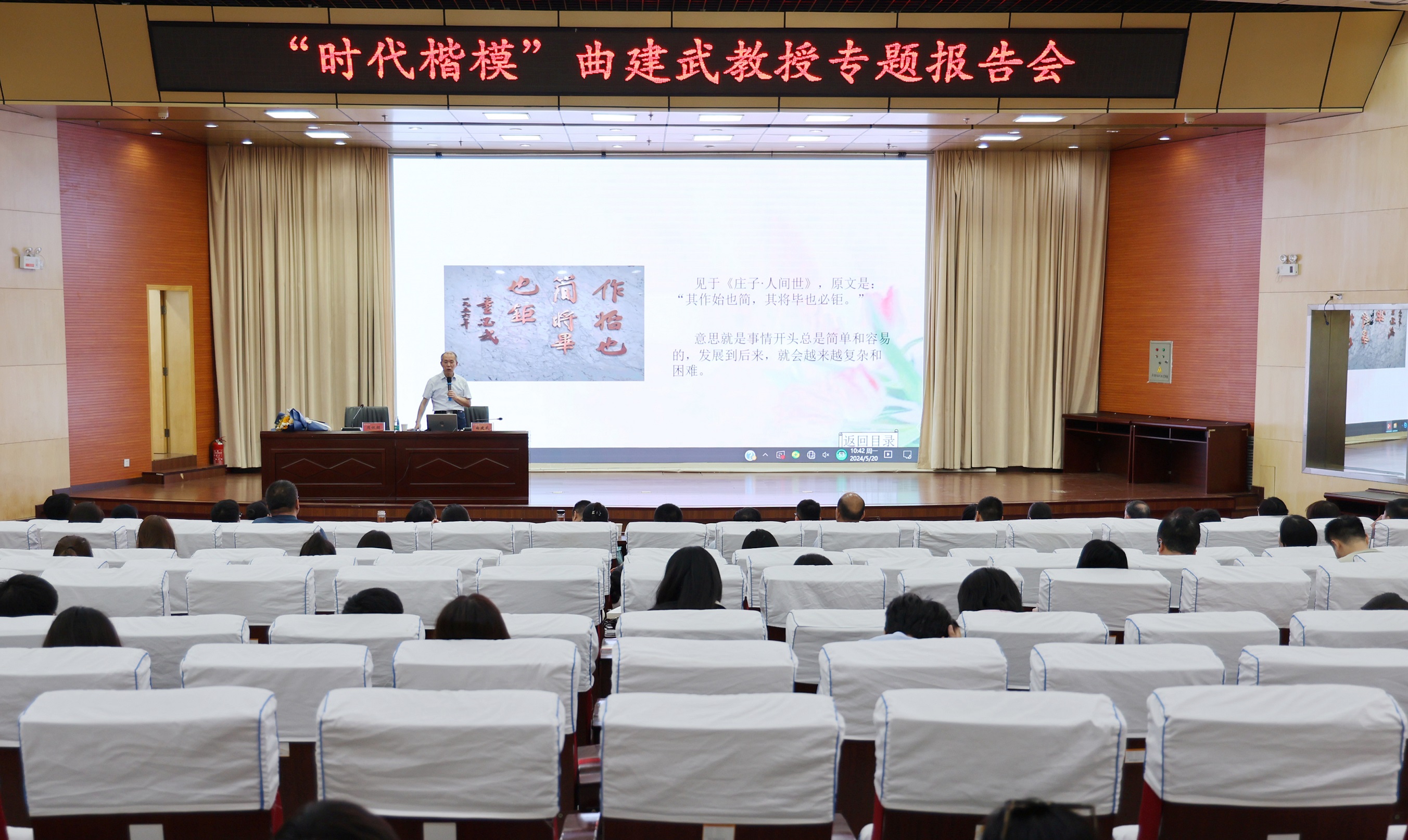 5月20日,“时代楷模”“最美奋斗者”“全国道德模范”“万人计划教学名师”“全国优秀教师”,大连海事大学马克思主义学院二级教授、博士生导师曲建武教授应邀来到金沙官网,分别为金沙官网师生作《做好大学生人生成长的指导者和引路人》《涵养崇高师德 倾力铸魂育人》专题报告。学校600余名师生参加报告会。