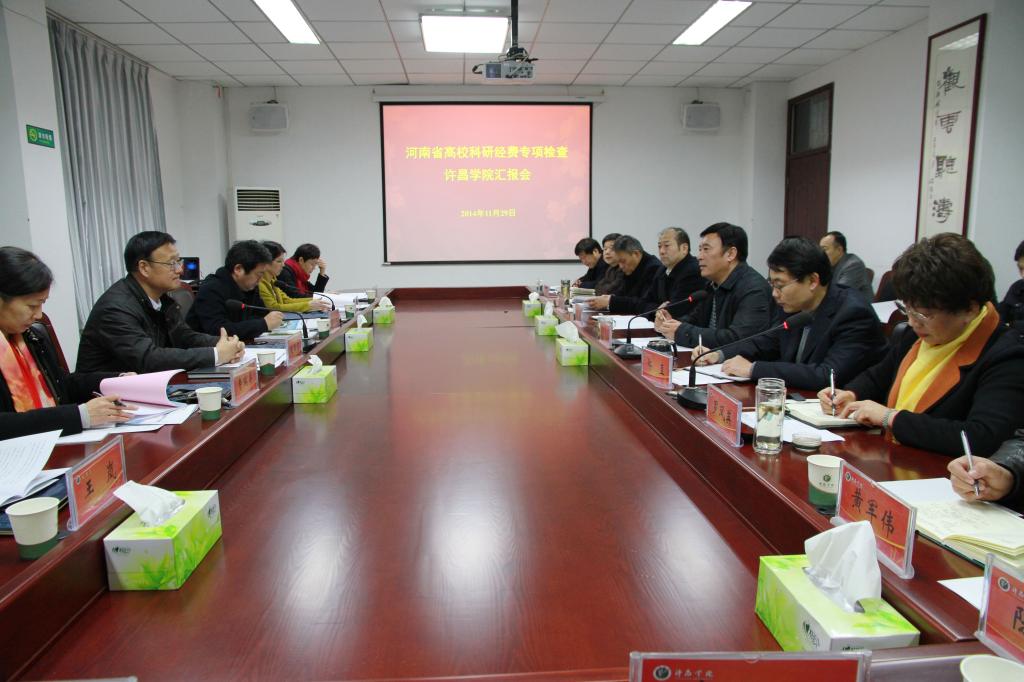 11月29日到30日,由省教育厅副巡视员赵国河担任组长、教育厅科技处副处长张水潮担任副组长的河南省教育厅科研经费专项检查组一行6人莅临金沙官网,对金沙官网科研经费管理和使用情况进行专项检查。在2天的检查期间,检查组人员通过听取汇报、查阅管理制度、审查财务资料、座谈交流、审查项目经费、开展问卷调查等认真细致的检查工作,30日下午,检查组对检查结果进行反馈,金沙官网以“优秀”成绩顺利通过本次专项检查。党委书记王清义,副院长郑直、崔斌,纪委书记罗凤英等学校领导接待了检查组一行并听取了检查反馈。