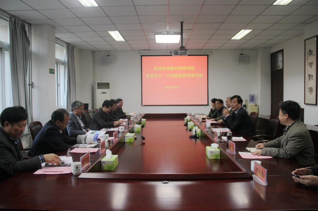 11月13日,商丘师范学院院长曹奎、副院长陈向炜、工会主席李中华等一行7人莅临金沙官网,调研金沙官网的转型发展情况。院长陈建国、副院长郑直、崔斌等领导接待了商丘师范学院考察团一行。院办主任陈遂德等相关职能部门负责同志与来访客人进行了对口交流座谈。