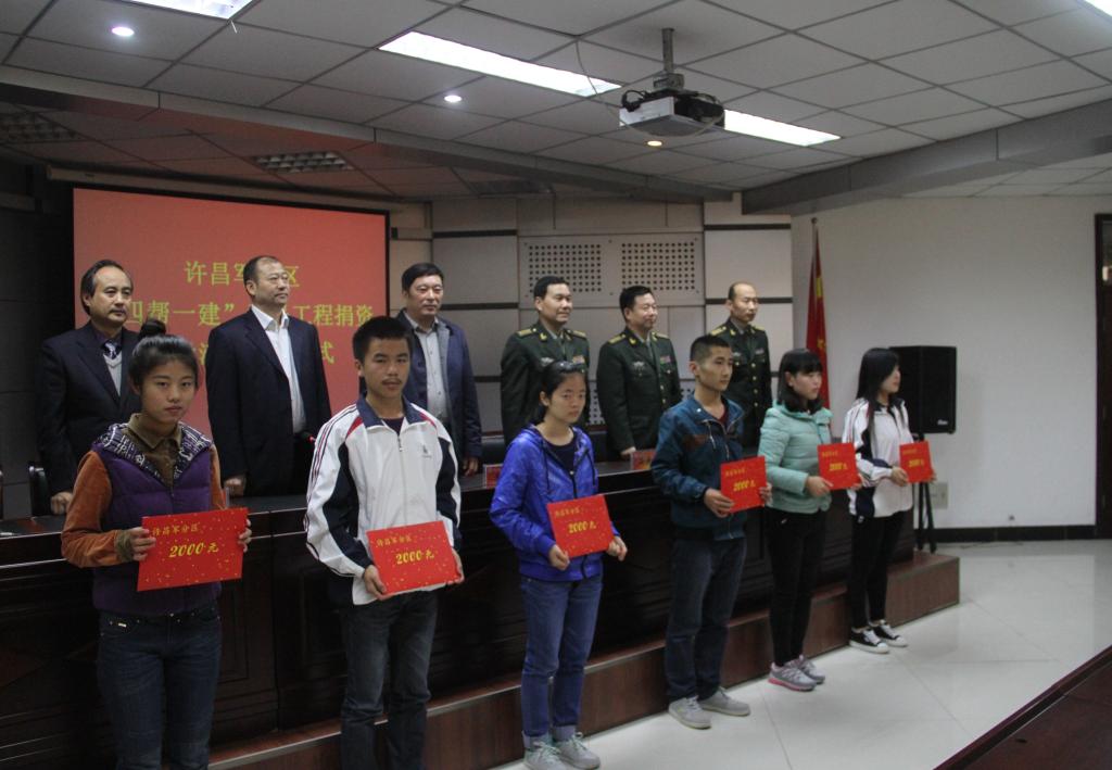 仪式上,许昌军分区政治部雷成伟主任讲话。他说,资助许昌高校的贫困学子是落实习近平主席关于加强军民共建一系列重要讲话精神的重要举措,是落实 “四帮一建”扶贫开发工作指示精神的需要,更是军分区践行党的群众路线、一心一意为群众服务、踏踏实实为民谋福利的实际行动。他感谢金沙2004路线js5多年来对许昌军分区工作的大力支持,希望同学们锻炼好体魄,不断磨砺心智,勤奋学习,将来能建功立业,实现富国梦、强国梦和个人梦。