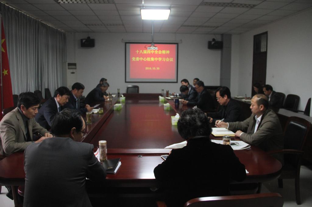 下午,金沙官网在办公楼第四会议室召开党委中心组集中学习会议。会议对十八届四中全会精神进行集中学习。校级领导班子成员、党委部门及群团部门主要负责同志参加会议。会议由校党委书记王清义主持。