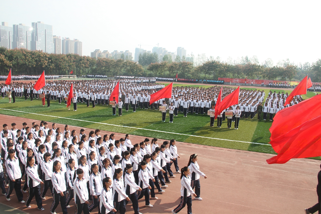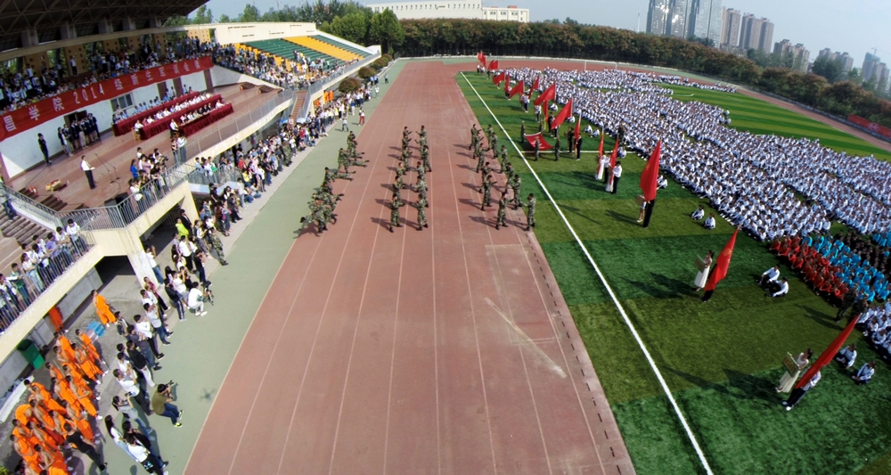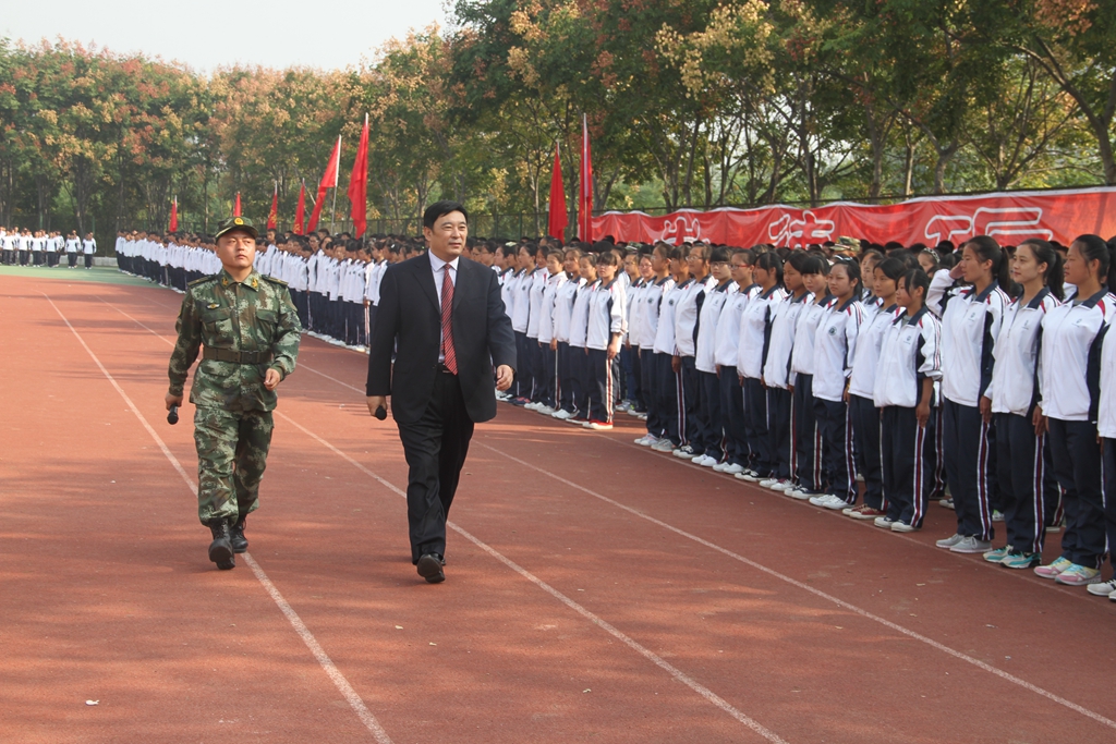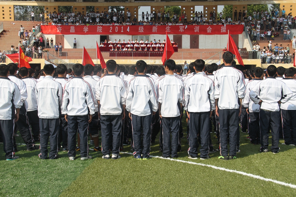 9月22日,金沙官网在学校体育场举行金沙2004路线js52014级新生军训会操,这标志着金沙官网2014级新生军训工作圆满结束。校党委书记王清义、院长陈建国,党委副书记王洪彬、马超,副院长张建军、崔斌、黄怡俐,工会主席杜志傲等学校领导班子成员出席军训会操活动并在检阅台就坐。协助金沙官网进行新生军训活动的武警许昌支队直属大队大队长丁鹏辉、郑州少林塔沟教育集团副董事长刘海钦、嵩山少林武术职业学院常务副院长郭爱先也出席了军训会操活动并在检阅台就坐。王清义书记检阅了2014级新生军训方阵。学校各院(部)、各机关部门负责人在主席台就座。全校各院(部)主管学生工作的领导、2014级的辅导员、班主任和全体新生6000多人参加会操活动。军训会操活动由院长办公室主任陈遂德主持。
