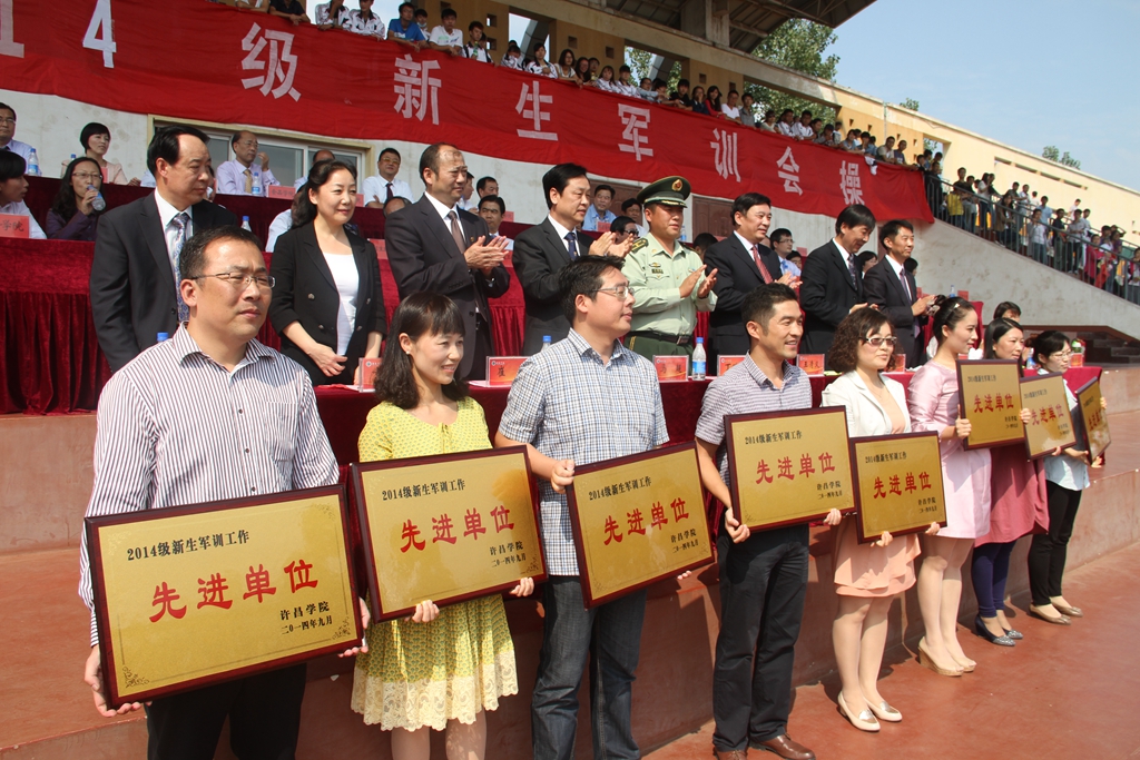 会操活动期间中,学校党委副书记马超教授宣布了学校《关于表彰2014级新生军训工作先进集体和先进个人的决定》。决定指出,经军训教官综合评议、推荐,学校研究,决定对外国语学院、教育科学学院、土木工程学院、法政学院、经济学院(管理学院)、信息工程学院、音乐舞蹈学院、五年制专科部等8个先进集体和2014级学生杨国志等106名先进个人进行表彰。出席军训会操的校领导为获奖单位和个人颁奖。