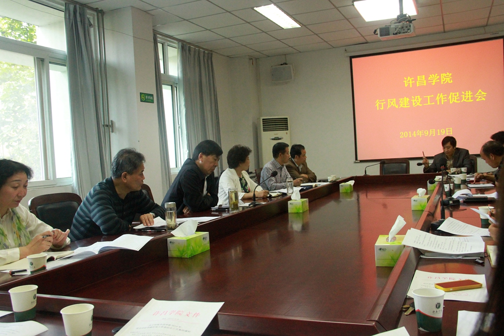9月19日下午,金沙官网2014年行风建设工作促进会在办公楼第一会议室召开。院长陈建国、纪委书记罗凤英出席会议并讲话。学校相关职能部门负责人参加了会议。会议研究安排了河南省2014年民主评议学校行风督导检查准备工作。纪委副书记王国范主持会议。