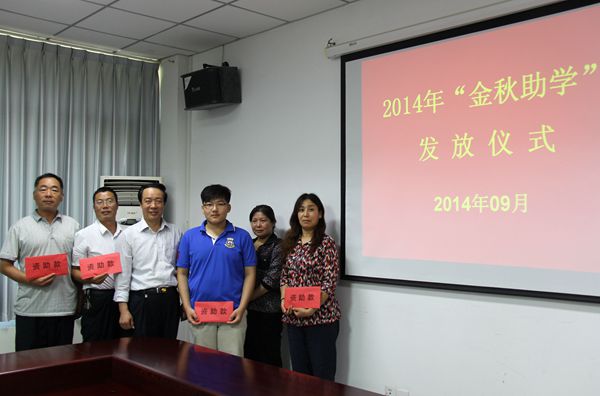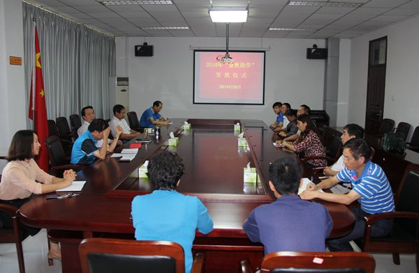 9月4日上午,校工会2014年“金秋助学”活动发放仪式在第四会议室举行,校工会主席杜志傲、副主席李福正、赵兰群、受助职工所在分工会主席、受助职工及子女、校工会全体同志参加发放仪式。会议由工会副主席李福正主持。