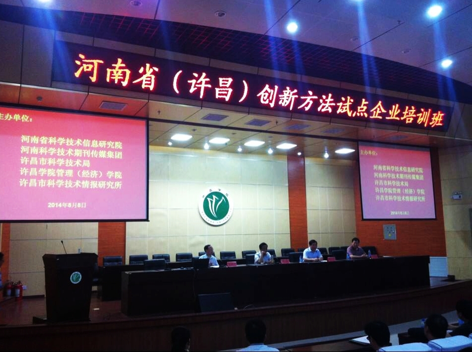 此次培训,是贯彻许昌市创新驱动发展战略,推动知识产权示范城市全面工作,助力创新型试点城市创建的重要举措。对于提高企业决策者的科技创新意识和创新思维,增强企业自主创新能力,推动我市专利工作发展,具有十分重要的意义。培训班上,河南科技期刊传媒集团董事长胡炜做了“自主创新,方法先行——我国创新方法工作发展战略规划与实践探索”主题报告,3个多小时的主题报告,系统讲授了TRIZ理论的起源、理论体系、核心价值思想、重要意义、国内外发展概况、典型案例、理论新发展,以及我国、我省推进创新方法工作的战略构想和实践探索成效与启示;省科学技术信息研究院副院长宁玉献、国家创新方法二级培训讲师刘小可分别就 “TRIZ理论的基本概念”、“40个发明原理”和“创新与独特的创新思维方法”进行了精彩的讲授。通过培训,参培人员充分认识到掌握科学高效的创新方法对于提高企业创新能力,提升核心竞争力具有十分重要的意义,表示要将学到的创新方法和理论运用到企业的研发、生产、管理和销售的各个环节,从而推动企业实现全面、深入、可持续的发展。 (图片由管理(经济)学院提供)