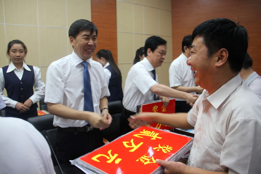王清义、陈建国、王洪彬、马超等出席会议的学校领导为获奖单位颁发了奖牌和奖金。