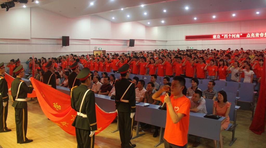 最后,全场社会实践队员在工作人员的带领下郑重宣誓:“坚守信念,永跟党走,牢记使命,胸怀家国;勤学苦练,增长才干,放飞青春,建功河南。”(摄影:宁智沛)