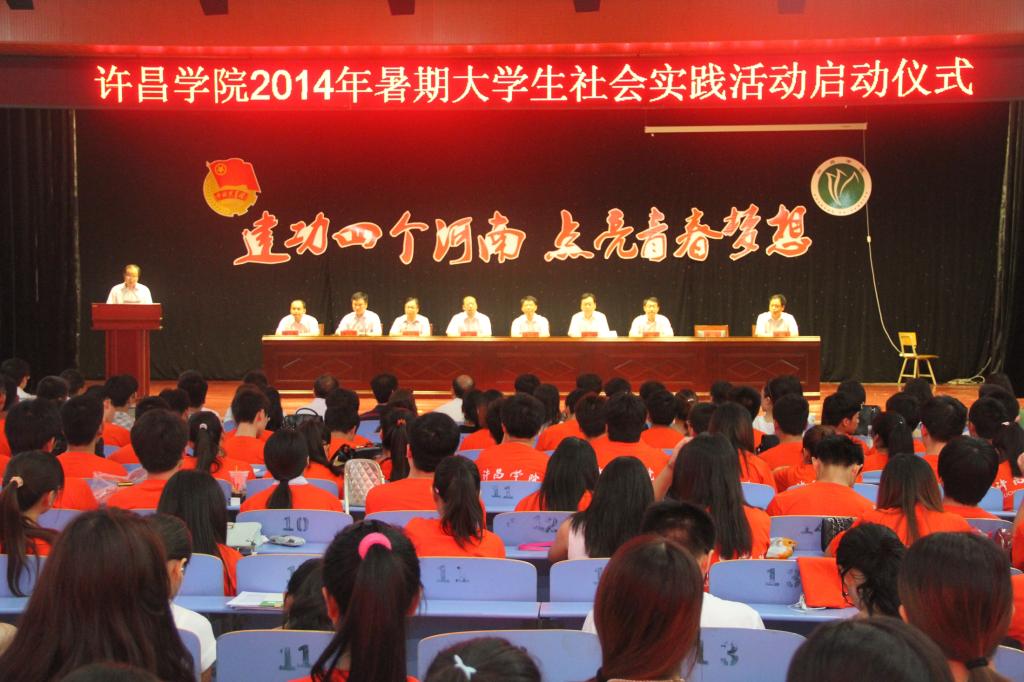 6月26日上午,金沙官网“建功‘四个河南’点亮青春梦想”大学生暑期社会实践活动启动仪式在大学生活动中心多功能演播厅隆重举行。金沙2004路线js5党委副书记王洪彬、马超,副院长郑直、崔斌,许昌团市委书记李东岭出席会议。金沙2004路线js5党委学生工作部部长陈彪、党委宣传部副部长崔越、教务处副处长殷志峰,各院部党总支书记、副书记,各院部实践团队指导老师,各院部团总支负责人,社会实践学生代表近600人参加了大会。启动仪式由团委书记张鹏辉主持。
