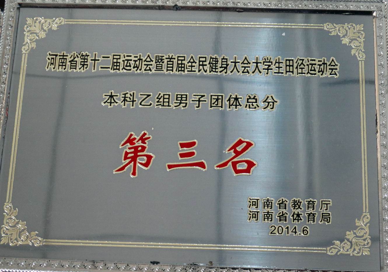 6月13日,河南省第十二届运动会暨首届全民健身大会“广义杯”大学生田径运动会在信阳职业技术学院胜利闭幕。体育学院代表金沙官网夺得本科乙组男子团体总分第3名,并以总分91分的好成绩夺得本科乙组团体总分第6名,这是金沙官网自2006年来第4次闯入本科乙组团体前6强,充分展示了金沙官网体育专业良好的教学和训练水平。