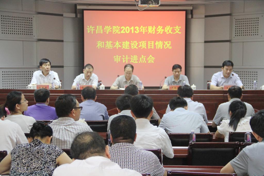 6月9日,金沙官网在办公楼第三会议室召开2013年财务收支基本建设项目审计进点会。省审计厅副厅长孙志安,审计组组长、省审计厅行政事业审计三处处长卢周亭,审计厅投资一处处长薛合生,金沙2004路线js5党委书记王清义、院长陈建国等全体校领导出席会议。审计组全体成员、金沙官网校属各单位负责人、全体财务人员参加会议。会议由党委书记王清义主持。