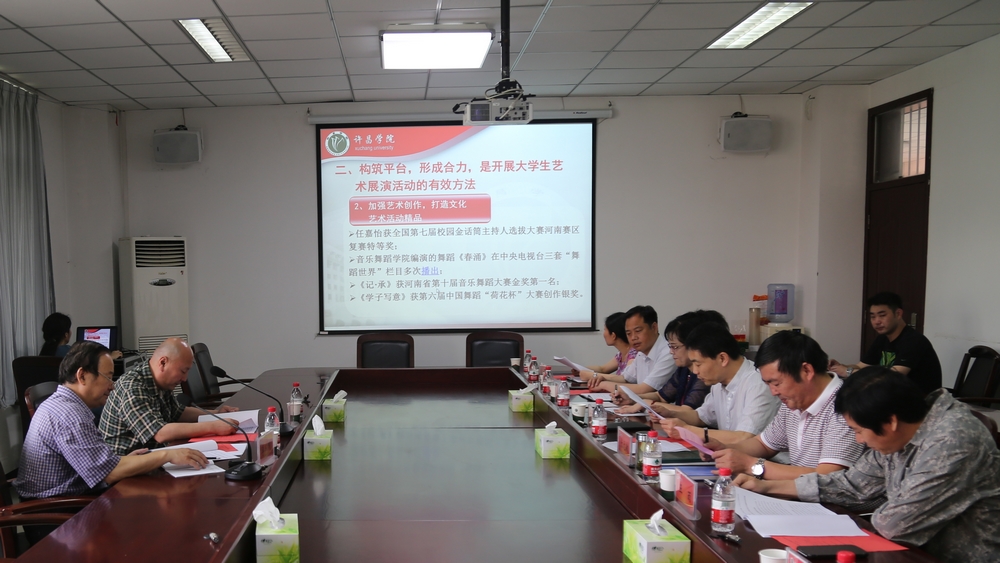 5月22日,河南省第四届大学生艺术展演活动专项检查组专家华北水利水电学院公共艺术教学部主任李以明教授(组长)、郑州大学美术学院张国强教授一行到金沙官网检查大学生艺术展演活动开展情况。副院长郑直教授出席汇报会,金沙官网有关职能部门负责人及相关学院领导参加汇报会。汇报会由教务处处长张元敏教授主持。