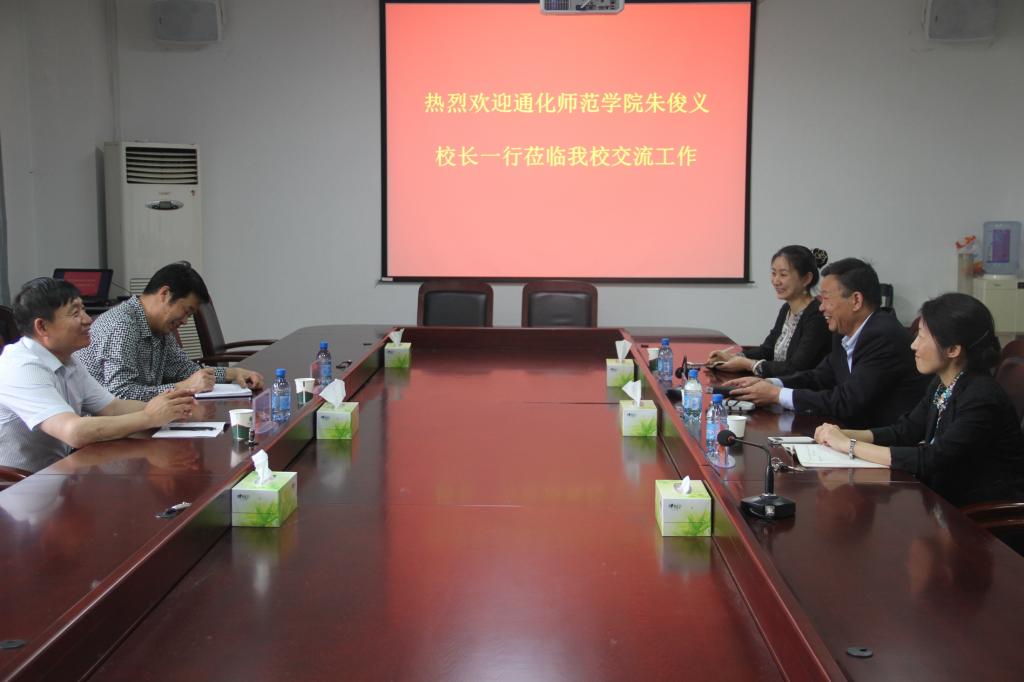 5月8日,吉林通化师范学院院长朱俊义一行来金沙官网考察交流。金沙官网在办公楼第一会议室召开座谈会。副院长张建军出席座谈会,院办、教务处等相关部门负责同志参加座谈会。