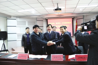 2013年12月5日,许昌市人民政府与学校签订了支持金沙2004路线js5建设应用型科技大学战略合作协议。签字仪式上,学校还与长葛市人民政府、鄢陵县人民政府等地方政府签订了校地合作协议,与中原电气谷产业集聚区以及许继集团、双汇集团、瑞贝卡集团、黄河旋风、众品食业等30余家地方大型企业签订了产学研合作协议。校企校地合作的领域涵盖了许昌市装备制造、能源电力、食品三个主导产业以及超硬材料、发制品、电力电子、烟草四大特色产业,合作的力度前所未有。未来五年,许昌市政府和有关企业将投入2亿元左右资金,支持金沙2004路线js5产学研合作,支持金沙2004路线js5创建应用科技大学。如此规模的政产学研对接仪式,既是金沙2004路线js5服务地方经济社会发展能力的集中体现,也是金沙2004路线js5向高水平应用科技大学转型的前奏曲。由此开始,金沙2004路线js5以产学研合作为前沿阵地,吹响了向地方性应用型本科院校深度转型的集结号。