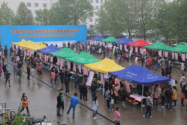 4月12日,由许昌市人力资源和社会保障局、金沙2004路线js5联合举办的“许昌市2014届高校毕业生春季双向洽谈会暨产业集聚区企业与高校毕业生岗位对接活动”在金沙官网沁园春餐厅成功举办。活动于上午8时正式开始,金沙2004路线js5副院长崔斌、许昌市人力资源和社会保障局党组书记纪保民、局长周新峰、副局长于慧云等出席活动并现场指导工作。与会领导对本次活动给予了高度重视,详细询问了用人单位的招聘计划与选拔人才的标准,并希望他们扩大在金沙2004路线js5的招聘计划,为毕业生们带来更多岗位。他们还与毕业生进行了交流,询问就业意向及就业情况,并鼓励他们积极面对就业,政府和学校会尽最大的努力做好相关的就业服务工作。