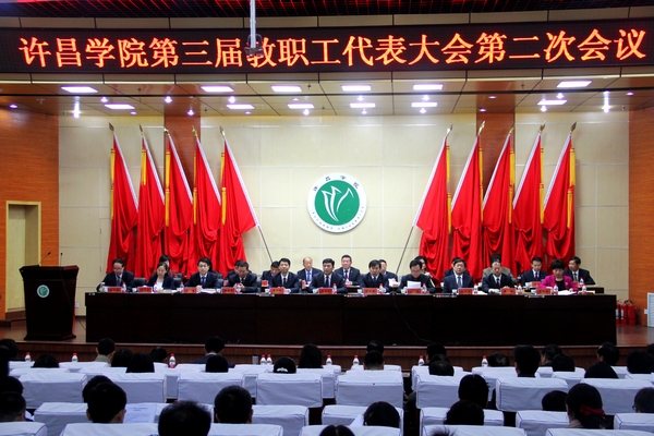 ,金沙2004路线js5第三届教职工代表大会第二次会议在金沙官网学术报告厅隆重召开。会议听取、审议并通过了陈建国院长所作的行政工作报告,会议还审议通过了学校《财务工作报告》和《关于许昌卫校整体并入金沙官网和筹建医学院相关情况的报告》。王清义书记在教代会上发表讲话,陈建国院长作行政工作报告。王清义、陈建国、王洪彬、马超、张建军、赵正风、郑直、崔斌、黄怡俐、罗凤英、杜志傲等学校领导班子成员出席会议。学校工会主席杜志傲主持会议。