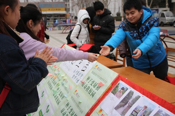 植树节当天,该组织还联合青年志愿者协会以及地音科普社举办了一场“种子变绿植,绿动金沙官网园”的绿植领养活动。“只要发送一条微博或发出一条短信,为你心目中的绿色大使投上一票,就能获得领养绿植的资格!”餐厅门口的宣传版面格外醒目。微博协会团支书邱月明告诉记者,“这是我们第2次举办这项活动,两次效果都很好。新媒体的应用已经成为人们生活的一部分,也成为大学生不可或缺的生活元素,所以通过微博、微信这样的渠道能够更好地提高同学们参与的积极性,也可以更加有效地宣传环保理念。”“通过领养绿植,自己亲自种植,看着它们开花结果,在这个过程中,对环保这一概念有了更深刻的感触。” 电气(机电)工程学院的冯圆圆说。当天约有400份枸杞种子包被在校师生免费领取。