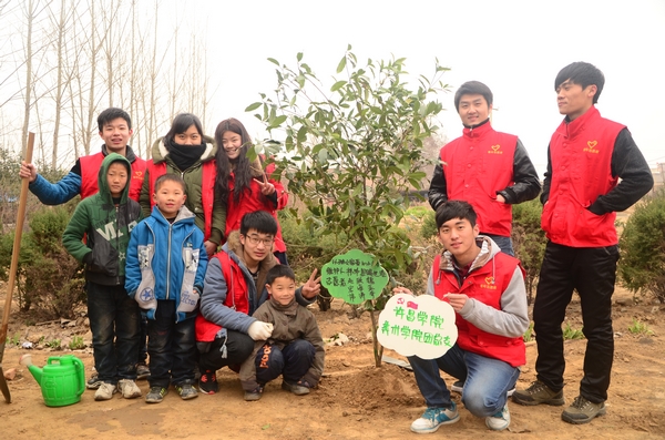 在许昌市“以琳之家”福利院,美术学院的志愿者与小朋友们齐心协力,一起种下爱心小树。孩子们扶着树苗,志愿者们认真培土,一起为树苗浇水、修整,小树上挂起了大家认真制作的写有志愿者和孩子名字的许愿牌。“希望孩子们能像这些树苗一样,在阳光雨露的滋润下,茁壮成长,更希望他们从小知道热爱自然、保护自然!”爱心志愿者彭婧表达了自己的愿望。