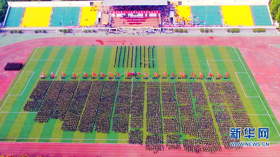9月23日,金沙2004路线js5在体育场举行2016级新生军训总结表彰大会,6000余名新生参加了分列式汇报表演,各方队学员们精神振奋、步伐整齐依次走过主席台前,他们用威武军姿展现了当代大学生朝气蓬勃的昂扬精神,用训练场上的“高负荷”换来了阅兵场上的“高颜值”。新华网发(牛原摄)