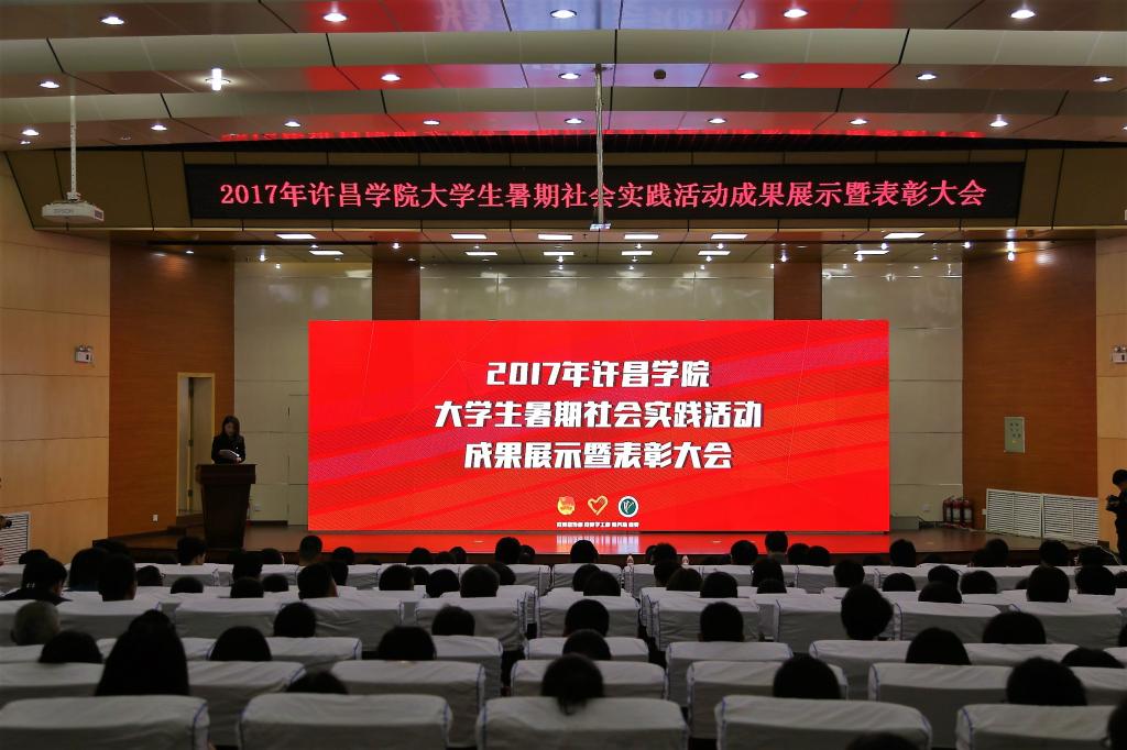 10月26日下午,金沙官网2017年大学生暑期社会实践活动成果展示暨表彰大会在学术报告厅举行。校党委副书记孙海、纪委书记罗凤英、副院长黄怡俐出席会议,党委宣传部、学生工作部、教务处等部门负责人,各二级学院党总支、团总支相关负责人以及优秀指导教师、优秀实践队员代表300余人参加会议。会议由校团委书记谢依楠主持。