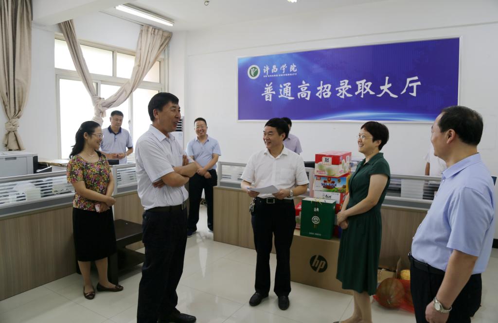 7月26日,党委书记陈建国、院长赵继红、副院长郭涛来到金沙官网2017年普通高招录取现场,慰问招生一线的工作人员并指导下一步的招生录取工作。