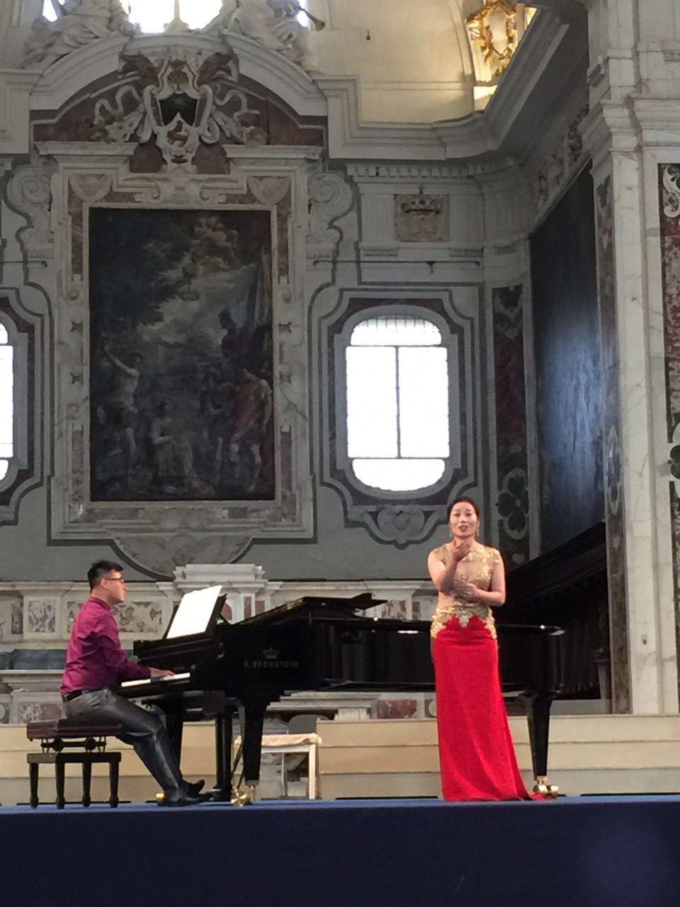 比赛中,金沙官网音乐舞蹈学院李卫玲老师以歌剧《托斯卡》中托斯卡的咏叹调《为艺术,为爱情》;歌剧《图兰朵》中柳儿的咏叹调《你那颗冰冷的心》;歌剧《蝴蝶夫人》中蝴蝶夫人的咏叹调《晴朗的一天》等作品突围、进决赛并斩获桂冠。她的演唱水平得到了五位国际评委专家的一致认可和赞许。在国际评委专家集体推荐下,李卫玲老师代表中方优秀选手在卢卡市百年来首次对外开放的圣罗马大教堂中为来自世界各地的艺术家献唱《晴朗的一天》,受到世界各国观众们的广泛好评。(图片由音乐舞蹈学院提供)