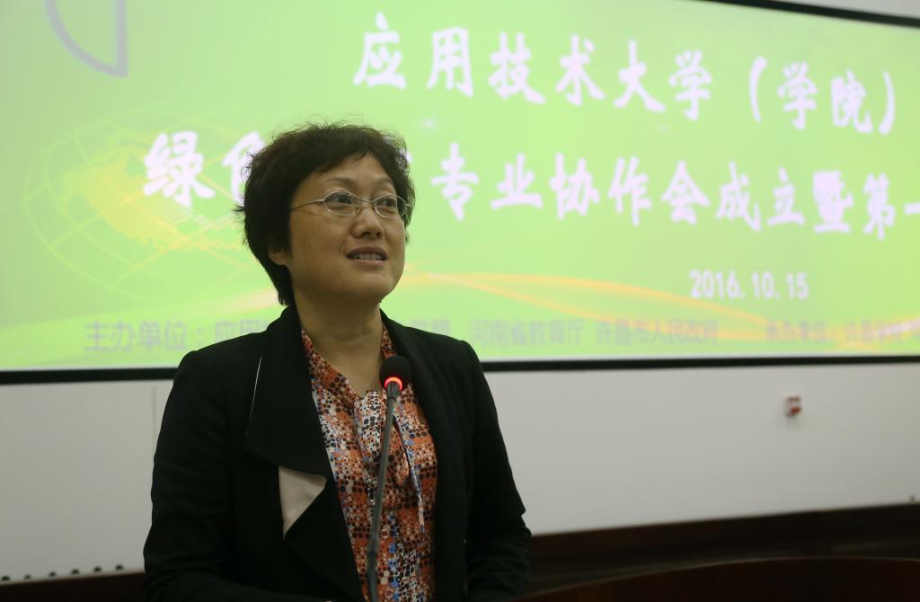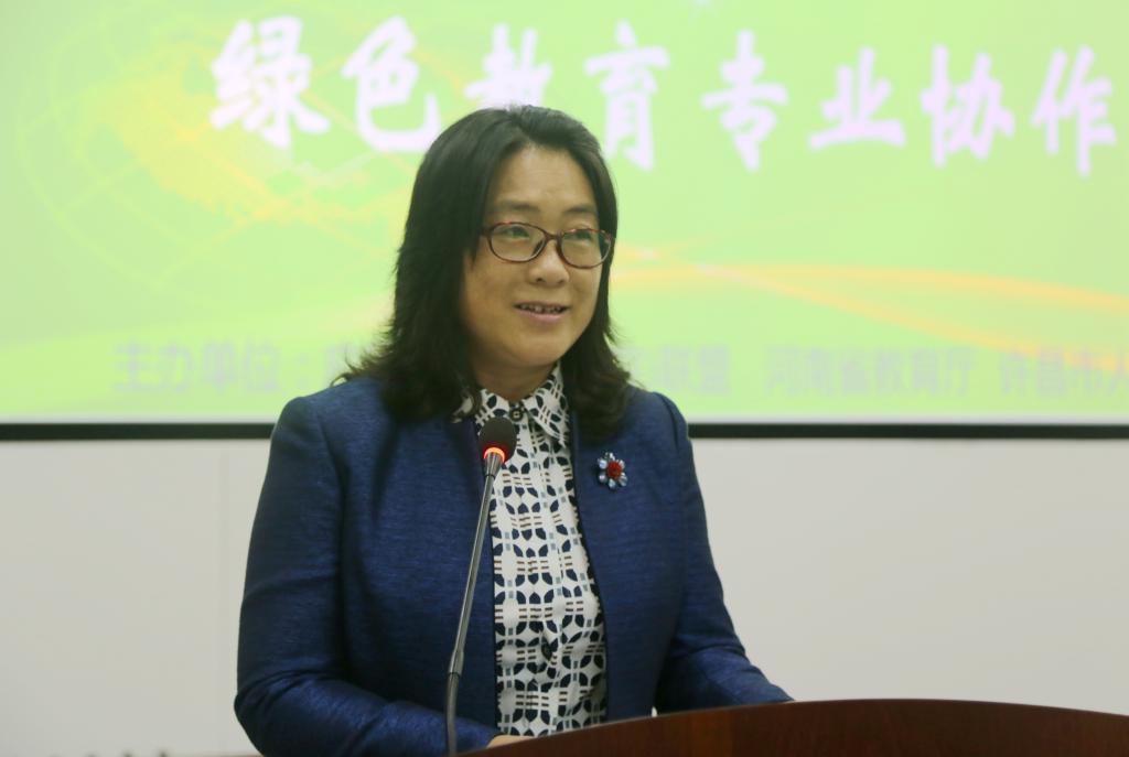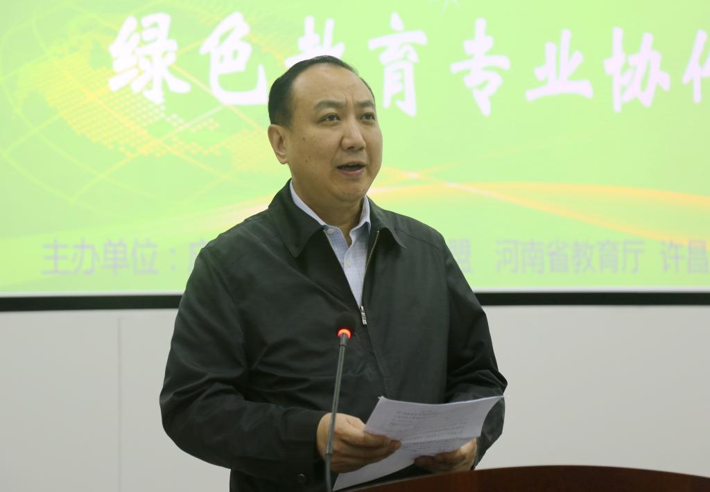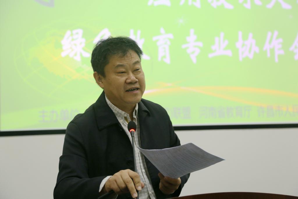 河南省教育厅副厅长张涛在大会上致辞。他说,推动本科学校转型发展试点工作,是当前河南省构建现代职业教育体系,提高服务地方能力的重要举措,河南省教育厅在政策保障、经费投入等方面给予了倾斜支持,并将继续大力实施示范性应用技术型本科学校建设工作。绿色教育专业协作会的成立,不仅是地方高校推进专业改革与建设,提高人才培养质量的必然选择,更是落实“创新、协调、绿色、开放、共享”的发展理念,将绿色理念融入人才培养全过程的积极探索和实践,培养学生的绿色素养、提高学生社会责任感、弘扬绿色文化,为社会“绿色发展”提供更多的支持。