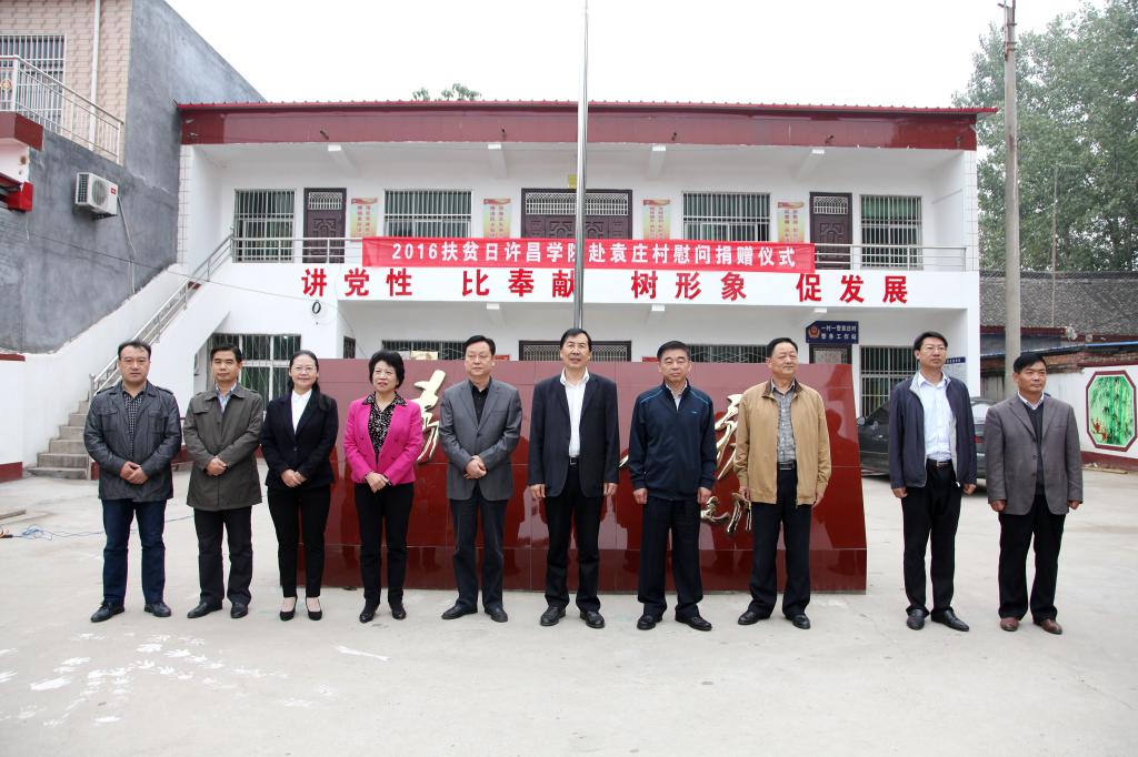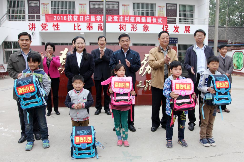 我国将迎来第3个扶贫日,为积极响应国家、省市关于在“扶贫日”期间开展有关活动的号召,10月14日,金沙官网赴定点帮扶贫困村许昌县艾庄乡袁庄村慰问捐赠。校党委书记陈建国、党委副书记马超、纪委书记罗凤英出席捐赠仪式,许昌县政协主席葛连春,许昌县副县长沈春光,金沙官网党委办公室主任潘春彩、党委宣传部部长冯晓民、党委统战部部长兼党委组织部副部长王林,许昌县艾庄乡乡长刘文奇,以及金沙官网部分教师、学生代表参加仪式。仪式由袁庄村第一书记刘军伟主持。