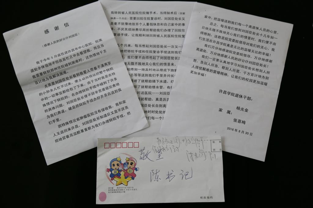 杨光金老师对我们说,离退休工作处的很多领导都在他住院期间前来看望,捎来了学校领导老师的慰问。“刘处长在我生病期间来回奔波,真的是辛苦了,我实在是抑制不住内心的感激写了这封感谢信,但还是远远不足以表达我的感谢。”杨老师说到这时眼睛竟情不自禁的有些湿润了:“我现在虽然退休了,但是依然能感觉到学校领导对我们实实在在,方方面面的照顾,我作为许院的一名退休教职工,感觉很幸福。”