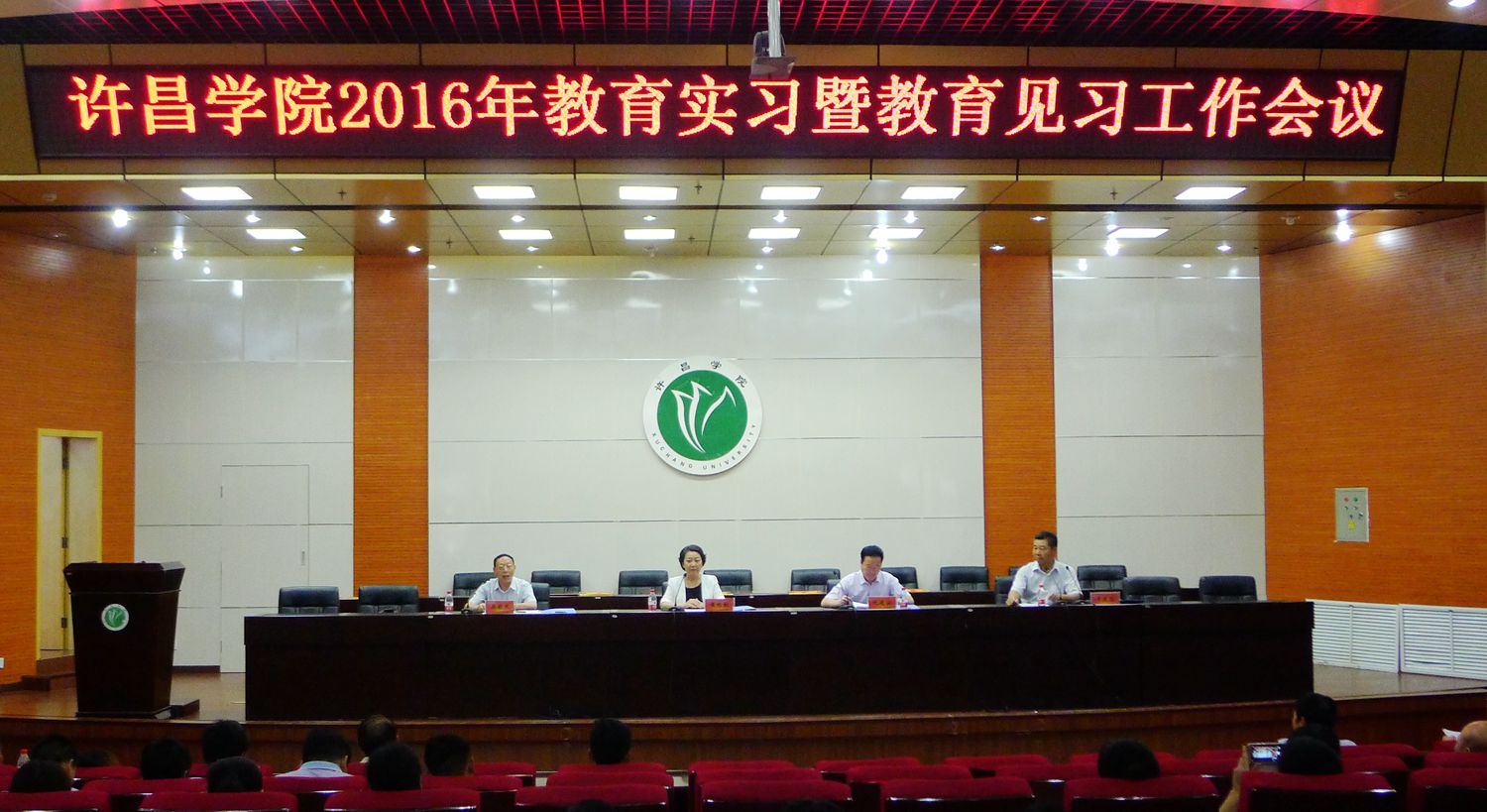 9月13日下午,金沙官网2016年教育实习暨教育见习工作会议在学术报告厅召开,副院长黄怡俐出席会议,许昌市教育局副局长代廷安,许昌各市、县、区教体局副局长、教育股股长,优秀实习学校校长和实习基地负责人以及金沙官网实习带队教师等200余人参加了会议。会议由教务处处长周颖杰主持。