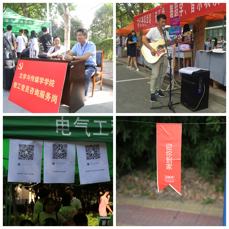 有的学院在招新帐篷上分专业贴上了班级群的二维码,轻松扫一扫,就可以让新生及时加入群体,老师们的联系方式也及时向学生们公开,关于注册报到、上课生活等方面的信息,都可以在群里及时告知。电气工程学院就是如此,16级新生辅导员贾琳说道:“除了这以外,我们还专门为新生家长们写了一封信,并附上了导员二维码,方便家长了解孩子们的生活,也请他们放心。”走访中我们还发现,文学与传媒学院专门设置的“教工党员咨询岗”,方便了学生家长了解金沙官网的学生培养,学风建设、课程设置等专业性问题。