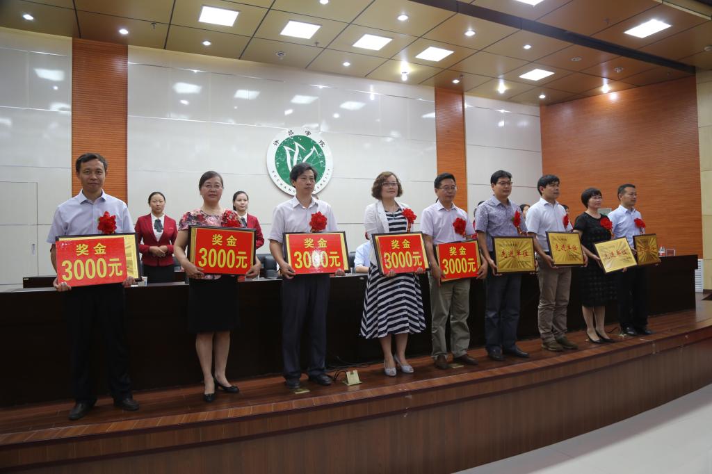 会上,赵正风副院长宣读《关于表彰先进单位、优秀教师和优秀教育工作者的决定》。郑直副院长宣读了《关于表彰第九届教学名师和第八届教学新秀的决定》以及《关于表彰第六届“十佳青年教师标兵”、2015—2016年度师德先进个人的决定》(表彰名单详见信息门户网站相关文件)。崔斌副院长宣读了工龄满三十年教职工名单,并通报一年来金沙官网教职工荣获省级以上荣誉情况。陈建国、赵继红等出席会议的学校领导为获得表彰的先进单位和先进个人颁发了奖牌、奖状和荣誉证书。