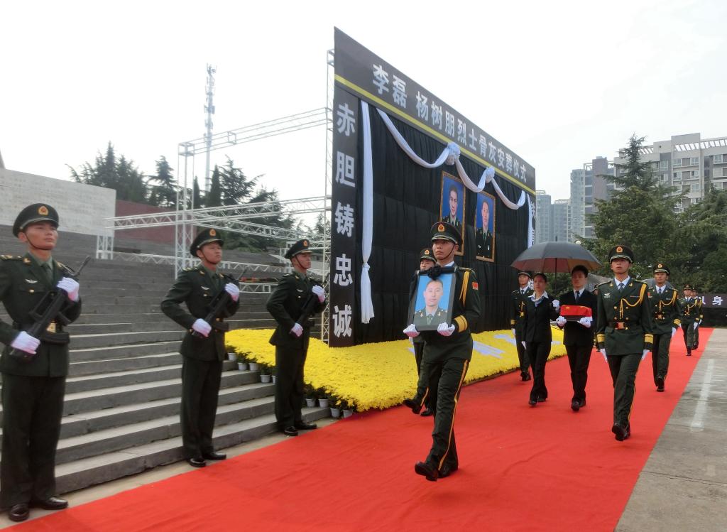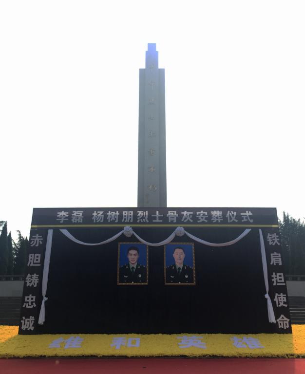 伴随着庄严的国歌,仪式正式开始。由李磊、杨树朋生前所在部队政委练伟同志宣读两位烈士的《革命烈士通知书》,旅长胡林海同志介绍了两位烈士的生平事迹。许昌市委书记武国定发表讲话,向两位烈士表示深切哀悼。他讲到,李磊、杨树朋烈士英勇顽强、舍生忘死的英雄事迹充分展现了强军目标引领下新一代“四有”新时代革命军人的精神风貌,充分展现了我军和平之师、威武之师、文明之师的良好形象,充分展现了中国人民热爱和平、维护和平的坚定决心,把两位烈士安葬在许昌市烈士陵园,表达了许昌人民对两位烈士的缅怀和敬仰,并呼吁全社会崇尚英雄,敬重英烈,关爱烈士。