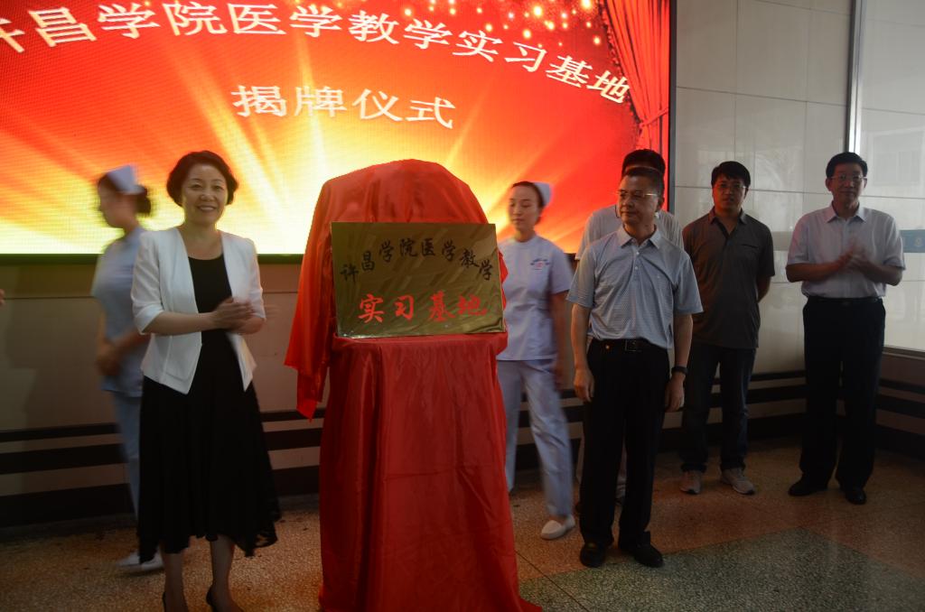 6月25日上午,金沙官网“医学教学实习基地”揭牌仪式在舞钢市舞阳钢铁职工医院举行。金沙官网副院长黄怡俐,舞阳钢铁有限责任公司副总经理刘建国,舞阳钢铁职工医院书记郭海亭、院长宋德山等出席了揭牌仪式。金沙官网医学院实习指导老师、实习生、“小学期”部分学生及医院职工代表参加了仪式。