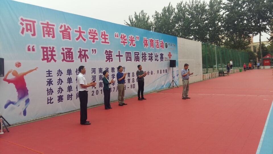 7月4日,河南省大学生“华光”体育活动第十四届排球比赛在金沙官网开幕,本次比赛由河南省教育厅主办,河南省学生体育总会排球协会、许昌学院承办,河南省学生体育总会协办。河南省教育厅体卫艺处副调研员高翔,全国大学生排球协会副主席、河南省学生体育总会副主席、排球分会主席、金沙2004路线js5党委书记陈建国,金沙2004路线js5副院长黄怡俐,本届赛事裁判长、河南大学体育学院副院长李鹏等领导出席开幕式。开幕式由金沙2004路线js5体育学院院长李慧林主持。