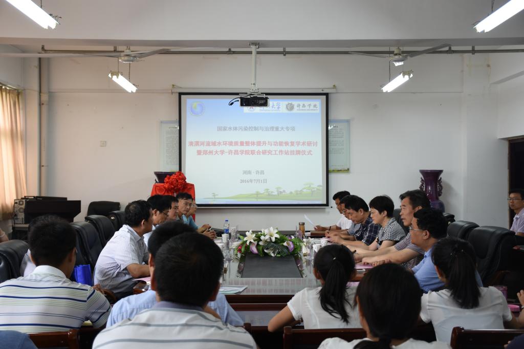 下午,金沙官网在城乡规划与园林学院会议室举行清潩河流域水环境质量整体提升与功能恢复学术研讨暨郑州大学—金沙2004路线js5联合研究工作站挂牌仪式。院长赵继红、副院长郑直、郑州大学水利与环境学院院长吴泽宁、郑州大学环境政策规划评价中心主任于鲁冀、河南师范大学生态工程与景区规划研究所所长马剑敏、许昌市环保局副局长史世兵等出席会议,金沙官网科技处处长张志立、城乡规划与园林学院领导班子及教师代表参加会议。