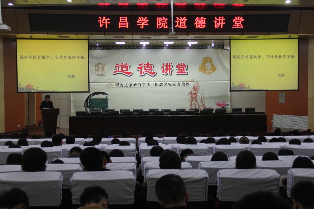 “万千世界诚信最大,一诺千金决不食言。”12月8日下午,金沙官网道德讲堂在学术报告厅成功开讲。本期道德讲堂由党委宣传部主办、电气(机电)工程学院承办,本期主题为“诚信,在你我身边”。活动特别邀请了许昌市首届诚信标兵获得者、金沙官网纪委副书记赵茹,电气(机电)工程学院2016届优秀毕业生张文帅为嘉宾,全校师生代表300余人参加了本次讲堂。