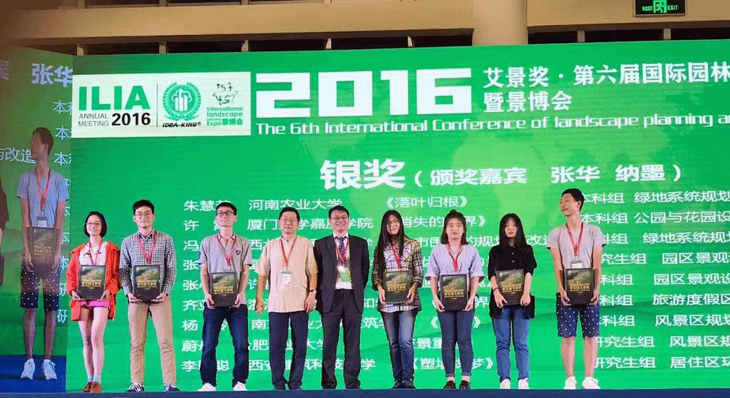 近日,2016国际园林景观规划设计大会暨第六届艾景奖颁奖盛典在厦门国际会展中心举办。金沙官网城乡规划与园林学院李满园、余显显老师指导的张心愿等同学的作品《化墙为境—金沙2004路线js5围墙空间提升规划设计》获得园区类景观设计银奖,王宁同学的作品《老城•隐水——许昌市高密度老城区海绵城市规划设计》获绿地系统规划类铜奖,周申等同学的作品《归栖--许昌清潩河人工湿地概念设计》获得公园与花园设计类铜奖,郭朋杨等同学的作品《抹平那道伤痕——防灾避难公园设计》获得公园与花园设计类优秀奖。金沙官网获得优秀院校组织奖,金沙官网李满园老师和余显显老师获得组委会颁发的“最佳指导老师”称号。