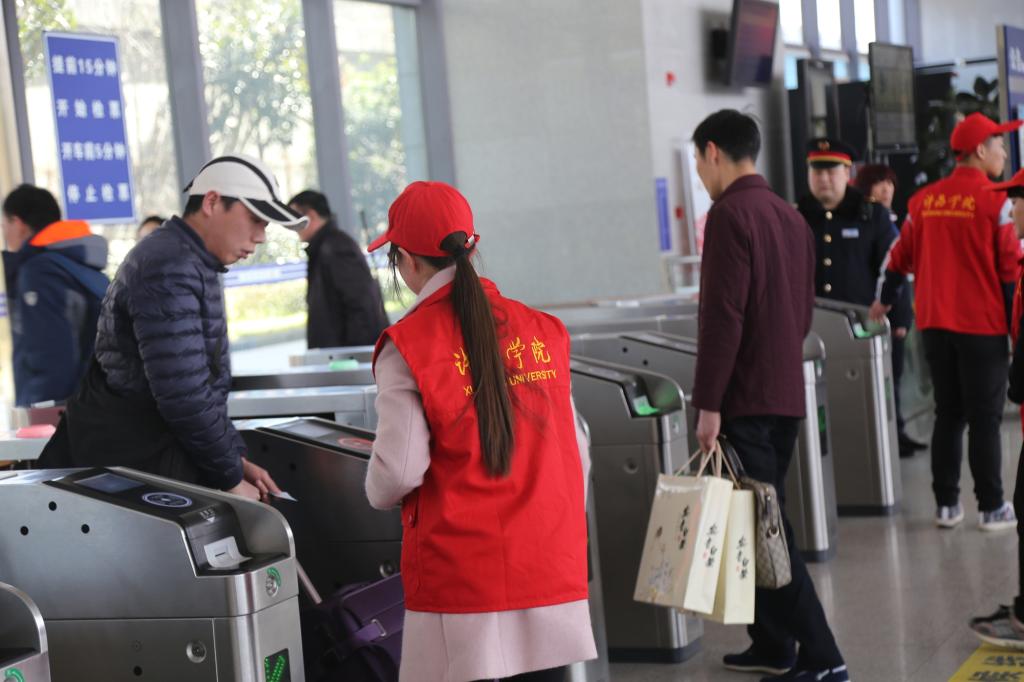 除了到敬老院看望孤寡老人、去康复中心照顾残障儿童、去小学做支教活动还有组织义务献血之外,在高铁东站服务旅客,同样是金沙2004路线js5编外雷锋营的大学生志愿者们长期开展的志愿活动。“我腿脚不太方便,行李还这么多,多亏了这些学生的帮忙,要不然估计从车上下来都是问题。”一位坐着轮椅的乘客拉着志愿者的手连连道谢。高铁东站的进站口、出站口和售票厅,都有编外雷锋营志愿者的身影。协助车站工作人员维持秩序、帮旅客拿行李、指导旅客如何使用自动购票机,志愿服务过程中的他们几乎没有休息的时间。15级电气机电学院雷锋连负责人罗付瑞告诉我们:“虽然每次做完志愿活动都会感觉累,但是一看到被帮助过的那些人的微笑就觉得所有的疲惫都消失了。”