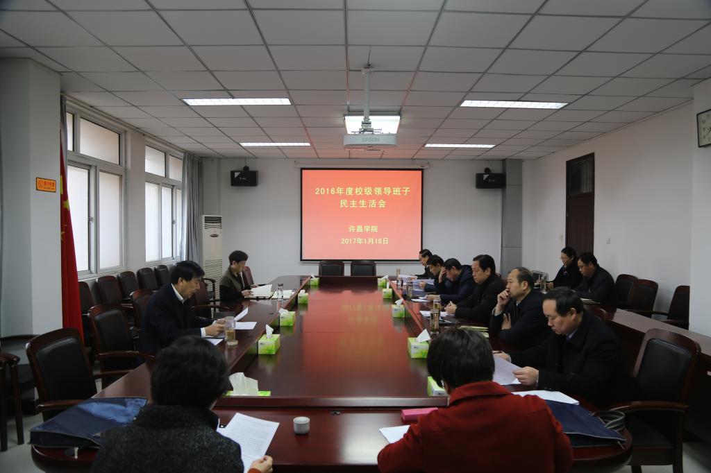 1月16日上午,金沙官网校级领导班子2016年度民主生活会在办公楼第四会议室召开。校级领导班子全体成员参加了会议。会议由党委书记陈建国主持。