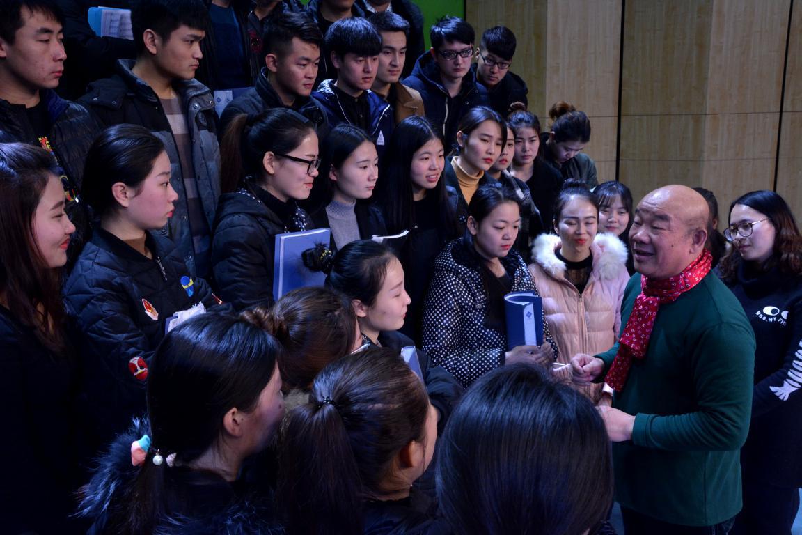 在实践排练中,陈家海教授为金沙官网音乐舞蹈学院合唱团亲自授课,有针对性地指导发声训练和合唱作品排练。他指出,合唱训练时运用头声、高位、直声的方法进行发声训练;声乐重在“唱”,而合唱重在“合”,声音要达到协调性、统一性、均衡性的完美结合。讲座中,陈家海教授结合作品与台下师生进行合唱、挥拍的指导与互动。陈教授诙谐幽默语言和严谨并富有亲和力的治学态度博得了师生们的多次喝彩声,全场高潮迭起,气氛热烈,大家对本次讲座倍感珍惜,受益匪浅。