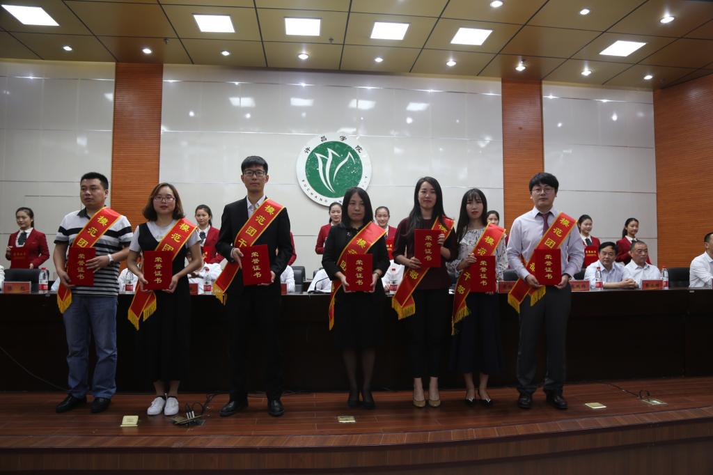 会上,以五四青年节和共青团成立95周年为契机,学校为10名新发展团员举行了入团仪式,与会领导为新团员佩戴了团徽。“学生工作先进单位”、“五四红旗团总支”获得单位代表城乡规划与园林学院党总支副书记候刚,“模范团干部”代表化学化工学院团总支书记易文翰,“十佳学习标兵”、“百星争艳工程——领航之星”获得者代表文学与传媒学院张思颖先后作了典型发言。