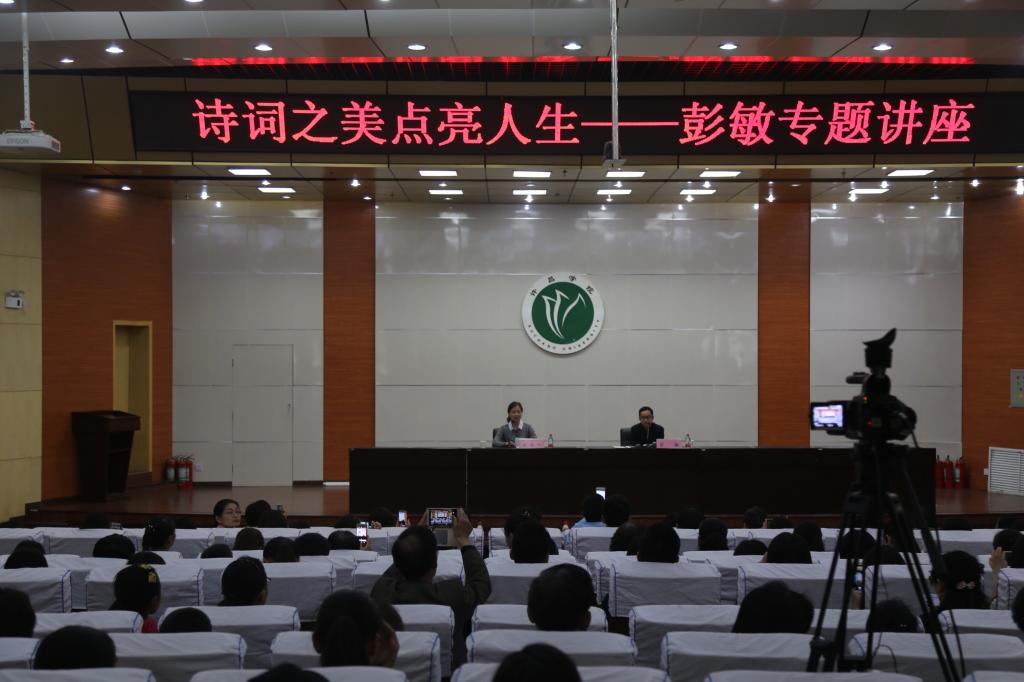 4月22日,彭敏以《诗词之美,点亮人生》为题,在金沙官网学术报告厅与校内外近400名诗词爱好者分享了他与诗词的种种不解之缘与人生际遇。